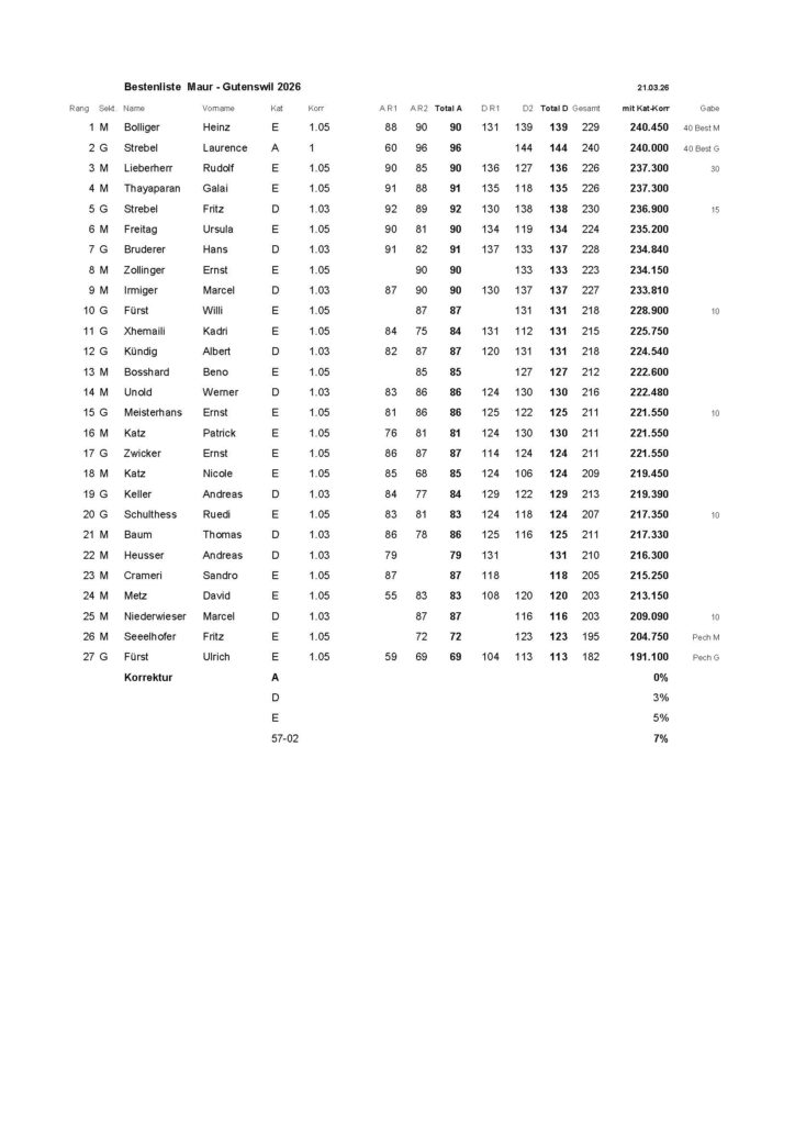 Am 14. und 21. März testeten die Vereine FSV MBF und SV Gutenswil ihren Formstand beim traditonellen Freundschaftsschiessen. 27 Schützinnen und Schützen beteiligten sich an der 35. Auflage dieses Wettkampfes.